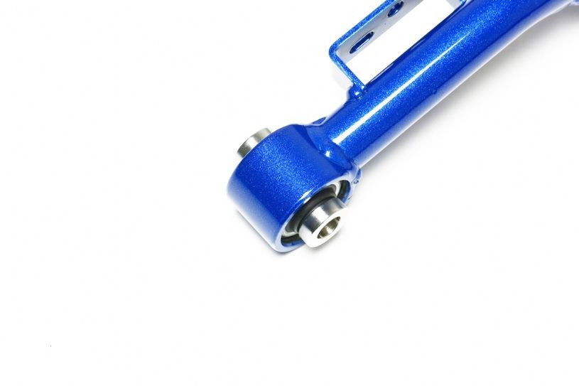 Zadní vlečná ramena Hardrace disponují perfektně zpracovanou konstrukcí z lehké vysokopevnostní oceli a přesnými rozměry pro jednoduchou plug´n´play výměnu za originální ramena. Na straně šasi jsou osazena kvalitními CrMo unibaly se sedly z tvrzeného plastu, na straně těhlice pak velmi odolným čepem. Ramena jsou ošetřena ED procesem a lakována do specifického modrého laku pro maximální ochranu proti opotřebení a korozi.