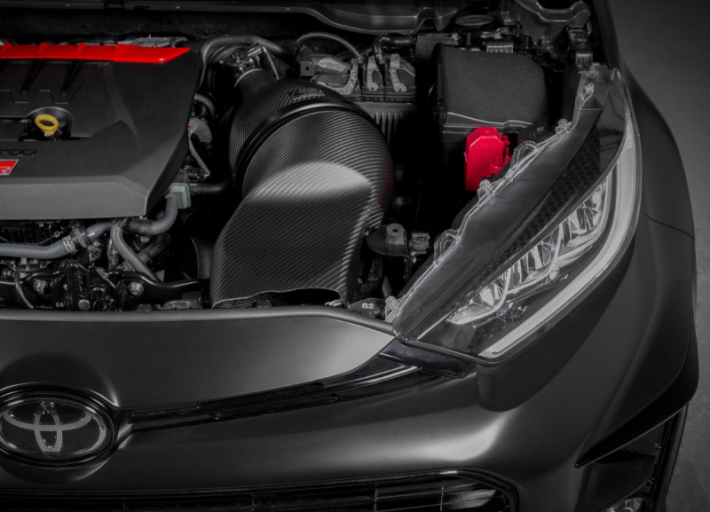 Karbonové sání Eventuri pro vůz Toyota GR Yaris bylo vyvinuto tak, aby zásobovalo turbo maximálním možným množstvím vzduchu, proudícím co možná nejméně restriktivním způsobem a zachovávajícím si co nejnižší teplotu nasávaného vzduchu. Tento kit sání využívá obří vzduchový filtr se vstupním průměrem 210 mm a filtrační plochou přes 130000 mm2 uzavřený v patentovaném karbonovém airboxu ze 100% prepreg karbonu.