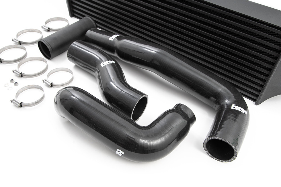 V porovnání se sériovým mezichladičem má vylepšený intercooler Forge o 42 % větší čelní plochu a o 100 % větší vnitřní objem a také zprostředkuje až o 10k a 10Nm vyšší výkon. Nárůst výkonu může být ještě vyšší v závislosti na stavu úpravy vašeho vozidla. Vzhledem k tomu, že průměry vstupu a výstupu, byly zvětšeny na 60 mm, jsou součástí intercooler kitu všechny potřebné silikonové hadice a spojovací materiál pro dokončení instalace a připojení k originálním dílům vozu.