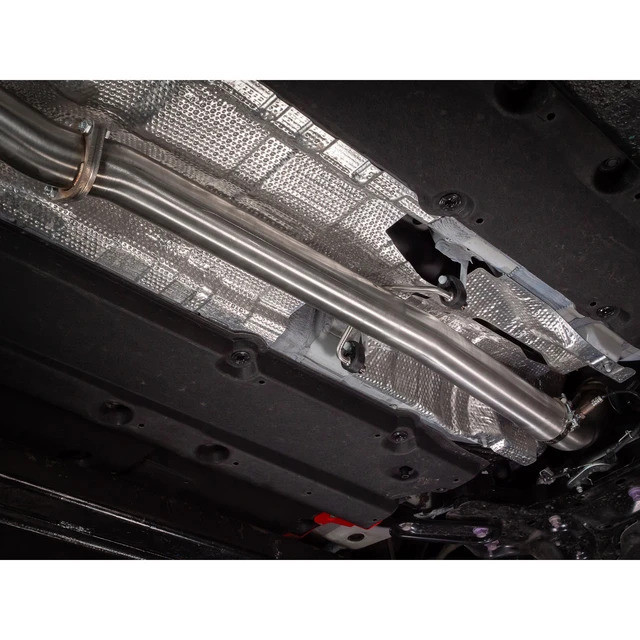 První díl výfuku (Downpipe) Cobra Sport vyrobený z nerezové oceli T304. Celý výfuk je tvořen ohýbaným vedením o průměru 101,6mm (u turba) s redukcí na 76,2 mm s vlnovcem. Díky zlepšení proudění spalin a eliminaci zpětných tlaků dokáží výfuky Cobra Sport zprostředkovat jak maximální výkon, tak hlavně i pěkný jadrný zvuk. Součástí tohoto výfuku je i náhrada filtru pevných částic (GPF-Delete), který může být nahrazen rezonátorem nebo zůstat prázdný.