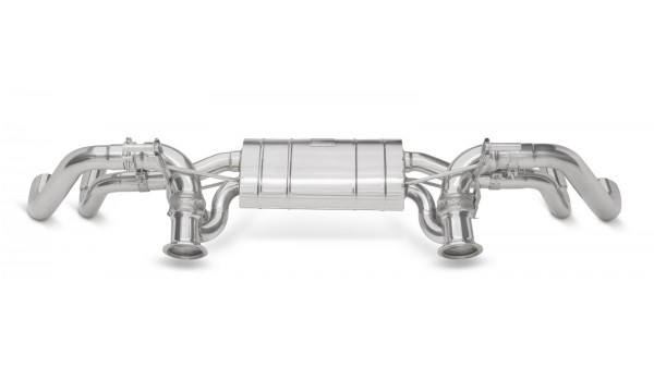 Koncový tlumič výfuku s klapkovou regulací zvuku a zpětných tlaků Tubi Style pro Lamborghini Huracan LP 610-4 výrazně upravuje zvuk, který podtrhne sportovní charakter vozu. Výfuk se napojuje za katalyzátory, nijak tedy neovlivňují emise vozu a ústí do originálních koncovek výfuku.
