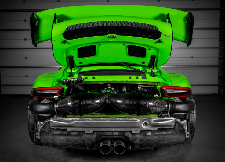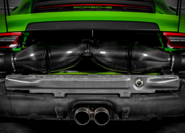Karbonové sání Eventuri pro Porsche 991.1 GT3 RS a 991.2 GT3 RS bylo navrženo tak, aby v porovnání s továrním airboxem nabízelo přímější a méně restriktivní vedení vzduchu do motoru. Sání využívá hned dva airboxy s patentovaným tvarem, které v sobě ukrývají jedinečné filtrační vložky. Celková kapacita vzduchu byla navýšena, stejně jako průtok vzduchu sacím vedením. Filtrační vložky mají vnější průměr 192 mm a každá z nich nabízí filtrační plochu 110000 mm2. Díky obalu z pravého karbonu poskytuje také sání perfektní ochranu před pronikáním horkého vzduchu. Výsledkem je vyšší výkon vozu a zejména rychlejší reakce na sešlápnutí plynu.