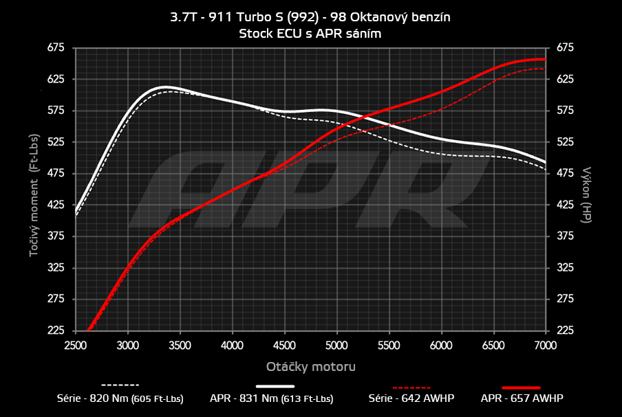 Zvýšení výkonu u modelu 911 Turbo S 3.7T bez úpravy výkonu: