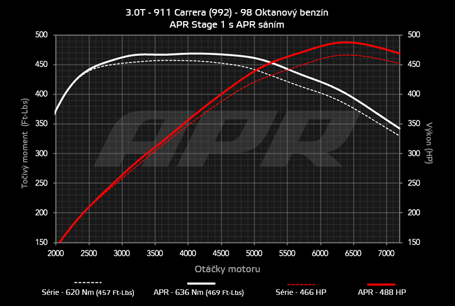 Zvýšení výkonu u modelu 911 T 3.0T s APR Stage 1 úpravou: