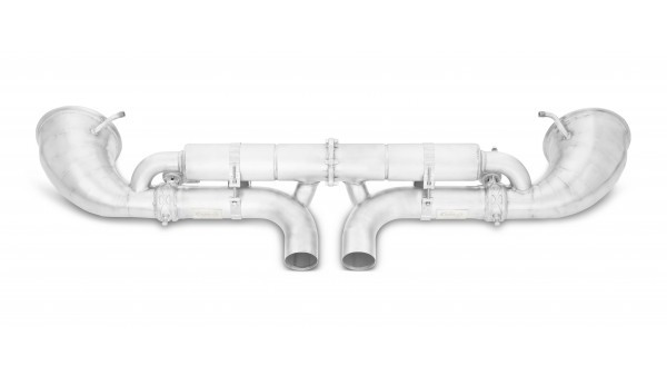 Catback výfuk Tubi Style pro Porsche 911 GT3 zásadně upravuje zvuk, který vozům vybaveným filtrem pevných částic tak žalostně chybí. Výfuk se napojuje za filtry pevných částic a nijak tedy neovlivňuje emise vozu. Nahrazuje kompletní tlumiče výfuku a ústí do originálních oválných koncovek. Za příplatek lze zakoupit koncovky od Tubi Style. Zachovává ovládání klapek výfuku pomocí originálních servo motorků, které se použijí z původního výfuku.