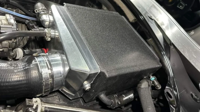 Účinnější chladič stlačeného vzduchu redukuje teploty nasávaného vzduchu minimálně o 7°C. Díky zvětšenému chladiči s objemem o 22% větším, oproti OEM, dokáže lépe chladit i vyšší úpravy motorů 2,0T a 2,5T včetně úprav s hybridním turbodmychadlem. CNC opracované hliníkové bočnice a grafenová povrchová úprava s větší teplotní disperzí jen podtrhují celkovou účinnost tohoto češení.