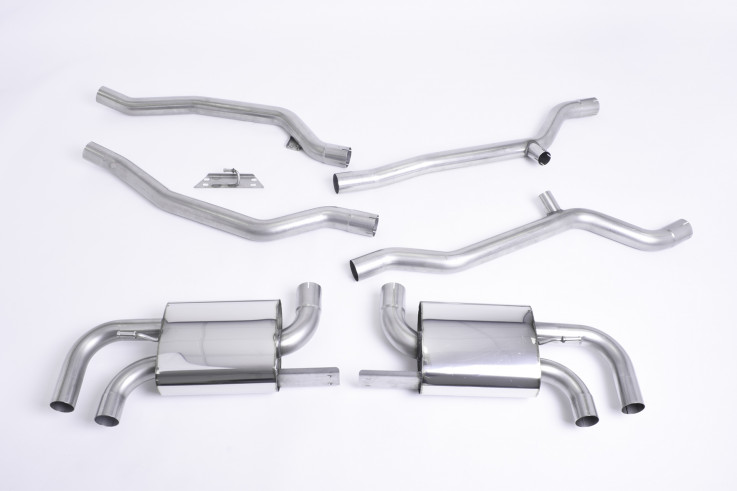 Vyroben z kvalitní nerezové oceli. Napojuje se za sériové katalyzátory. Obsahuje středový díl bez rezonátorů (hlasitější) nebo s rezonátory (tišší), vedení kolem zadní nápravy a tlumiče výfuku se zakončením do sériových, nebo Milltek Sport leštěných koncovek výfuku o průměru 100 mm. Díky zvětšenému průměru vedení a zlepšení průtoku spalin skrz vedení, zlepšuje jak výkon, tak hlavně i zvukový projev. Výfuk je až o 35% lehčí než originální, vyrobený z těžké oceli. Největší nárust výkonu a úbytek hmotnosti lze čekat ve spojení s úpravou řídící jednotky od APR.