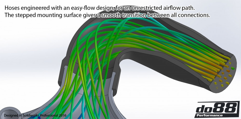 - Silikonové hadice o větším průměru pro napojení z a do ntercooleru