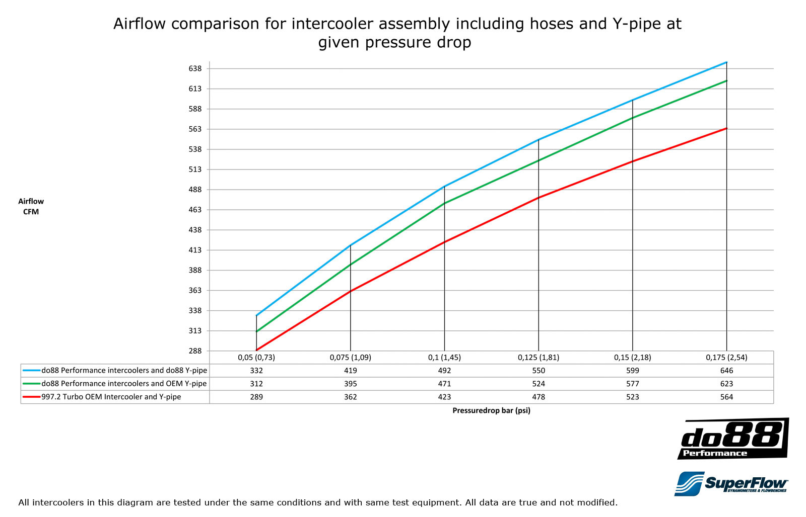 Tento intercooler kit zajistí maximální úroveň chlazení i za těch nejtěžších podmínek a tím vyšší výkon. Plně hliníková konstrukce s nepřerušovanými sváry znamená vysokou kvalitu, spolehlivost a životnost. Zvolené větší jádro chladiče zlepšuje efektivitu chlazení a snižuje tak teplotu nasávaného vzduchu. Zvětšením vedení včetně vstupů a výstupů z intercooleru a velkého přívodního vedení od Y dílu se také dramaticky zmenšily tlakové ztráty a zvýšila se tak propustnost vzduchu skrz celý intercooler kit. Tím zvyšuje výkon a zlepšuje reakce motoru. Celkově je chladič optimalizovný tak, aby zajistil maximální chlazení, při stále ještě snadné montáži, kdy chladič pasuje na místo sériového chladiče bez nutnosti dalších úprav.