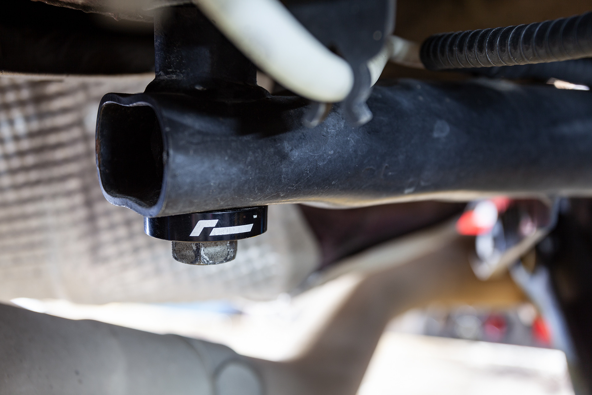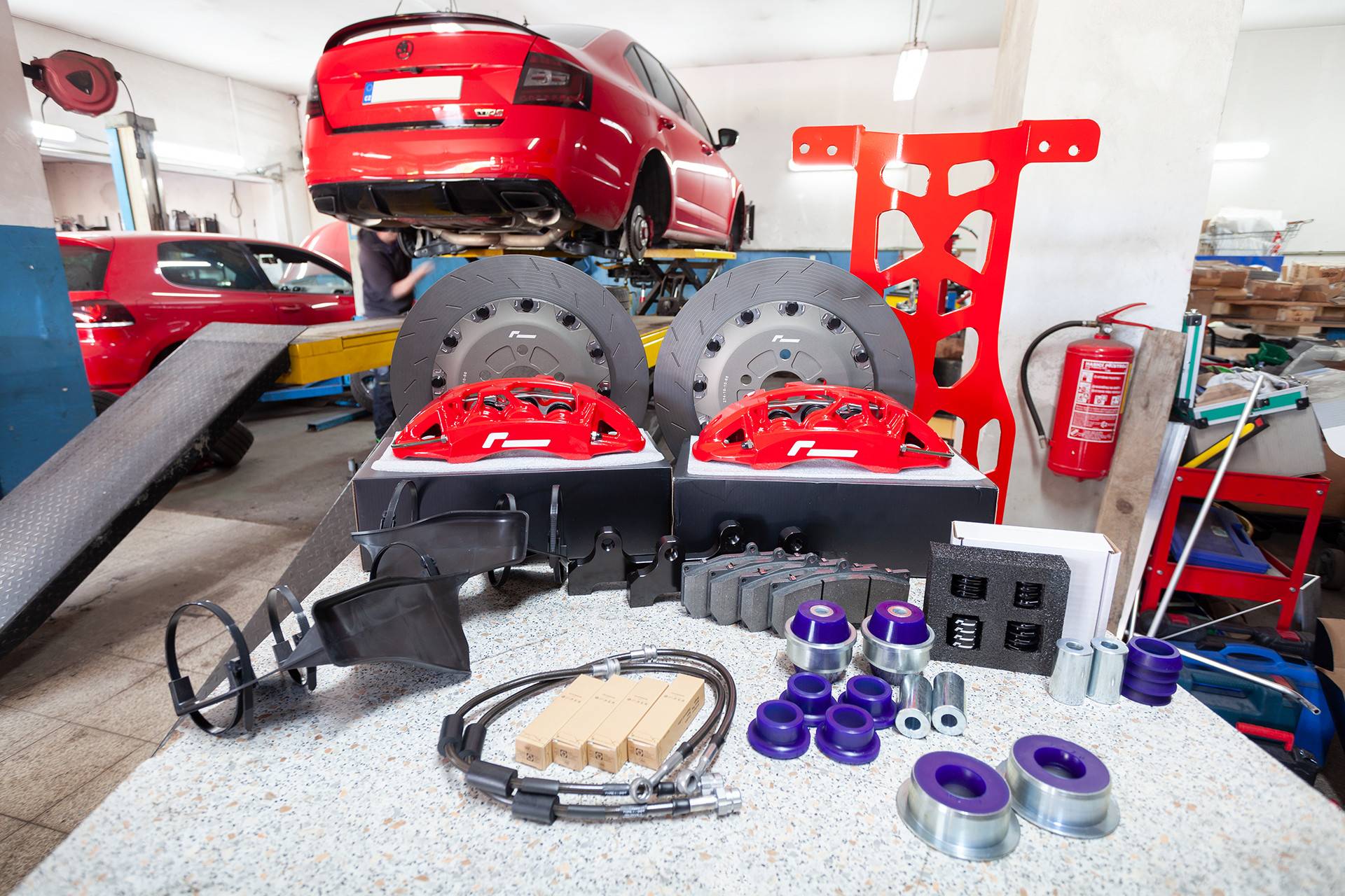 Aby stíhal i pdvozek, tak byly namontovány sportovní pružiny od Racingline Performance, tužší stabilizátory od KW, silentbloky předních ramen a zadního vlečného ramene od SuperPro a silentbloky uložení přední i zadní nápravnice od Racingline Performance. O dokonalý brzdný účinek se starají také větší motnoblock 380mm brzdy od Racingline, které se skrývají za paprsky APR Flow Form lehkých kol.