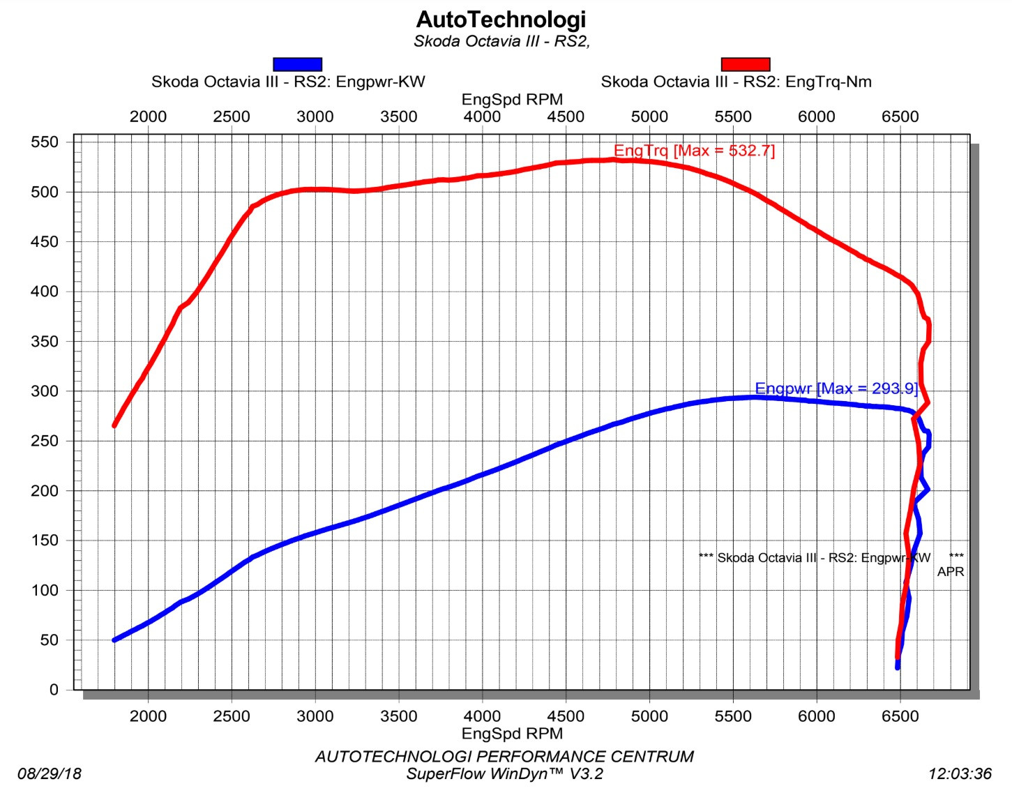 Octavia RS245 má lehce odlišný motor 2,0 TSI, který díky absenci nepřímých vstřikovačů má o trochu menší potenciál, hlavně co se týče točivého momentu. I tak jsme zde získali velkou porci výkonu a točivého momentu. To by se nám nepodařilo bez kvalitního naladění řídící jednotky a obřích zkušeností, které s těmito motory máme.