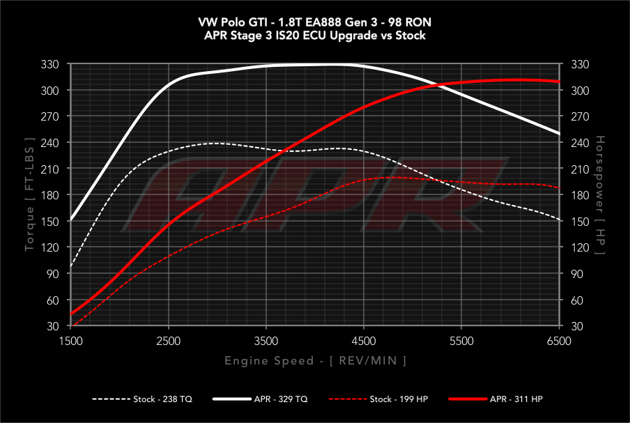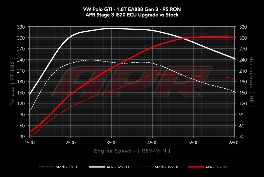- APR Stage 3 IS20 318+hp 447Nm chiptuning VW Polo GTI 6R SEAT Ibiza Cupra 1,8 TSI