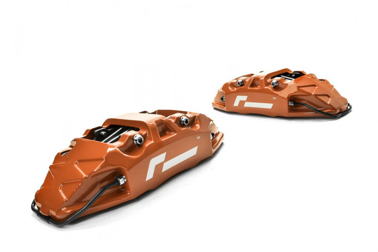 Každý lehký monoblock brzdový třmen je jednodílné konstrukce. Vše začíná blokem hliníku, který se opracovává nejmodernějším CNC strojem tak, jako se vyrábějí motorsportové díly. Oproti klasickým brzdičům, které jsou vyrobeny ze dvou půlek sešroubovaných k sobě, tyto monoblock brzdiče mají vyšší pevnost, odolnost vůči kroucení a hlavně výrazně nižší váhu. I přesto, že brzdiče jsou větší jak sériové, tak se starají o podstatné snížení hmotnosti. Brzdový třmen včetně brzdových destiček a držáku třmenu váží 4,4kg, což je výrazná úspora vůči originálním brzdičům, které váží 8,6kg.