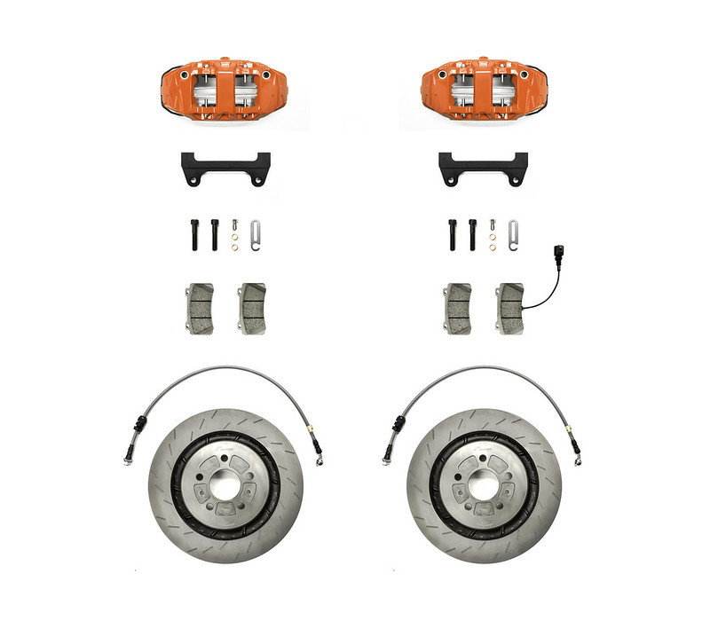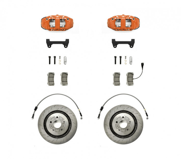 Jedná se o kompletní kit, který obsahuje vše co je potřeba k montáži. Brzdové třmeny, destičky, kotouče, držáky třmenů, brzdové hadice a veškeré další montážní příslušenství.