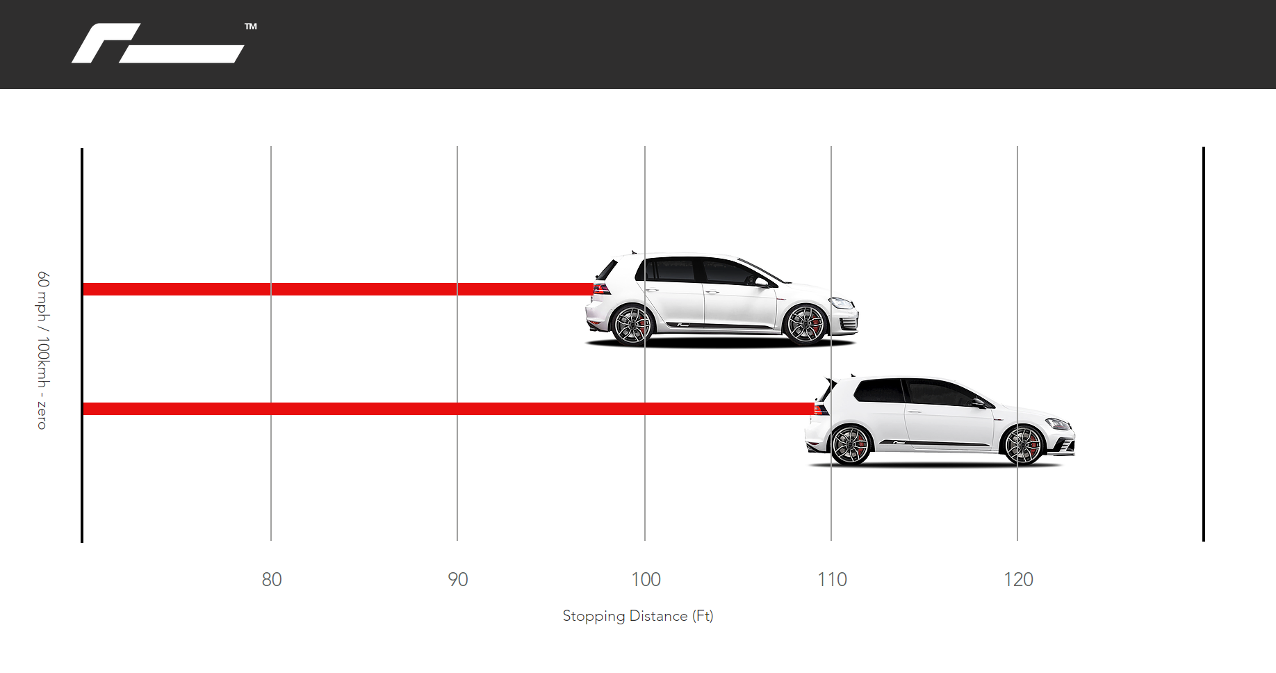 Během extensivního testování dokázaly tyto brzdy zastavit standartní VW Golf 7 ze 100km/h na 0 za 2,43s. Hlavním přínosem velkých brzd je ale schopnost toto zopakovat neustále znovu a znovu. Testování tak prokázalo stálost brzdného účinku, kde již po pěti brzdění originální brzdy výrazně ztrácely jak na brzdné vzdálenosti, tak citu, kdy se brzdový pedál propadal dále a ostrost brzd zmizela. Při zvýšení rychlostí, ze kterých by se brzdilo, by byl výsledek horší a horší. Mezitím Racingline brzdový kit i po několika opakování brzdil stále stejně jako při prvním pokusu. I citlivost dávkování brzd byla stále stejná.
