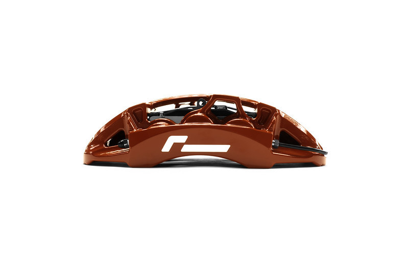 Každý lehký kovaný monoblock brzdový třmen je jednodílné konstrukce. Vše začíná ukovaným kusem hliníku, který se opracovává nejmodernějším 5ti osým CNC strojem tak, jako se vyrábějí top motorsportové díly. Oproti klasickým brzdičům, které jsou vyrobeny ze dvou půlek sešroubovaných k sobě, tyto monoblock brzdiče mají vyšší pevnost, odolnost vůči kroucení a hlavně výrazně nižší váhu. I přesto, že brzdiče jsou větší jak sériové, tak se starají o podstatné snížení hmotnosti. Brzdový třmen včetně brzdových destiček a držáku třmenu váží 5,3kg, což je výrazná úspora vůči originálním brzdičům, které váží 8,6kg.