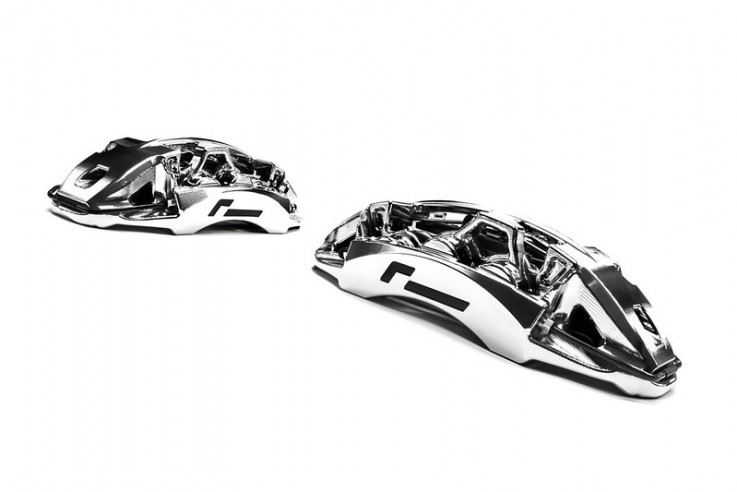 Každý lehký kovaný monoblock brzdový třmen je jednodílné konstrukce. Vše začíná ukovaným kusem hliníku, který se opracovává nejmodernějším 5ti osým CNC strojem tak, jako se vyrábějí top motorsportové díly. Oproti klasickým brzdičům, které jsou vyrobeny ze dvou půlek sešroubovaných k sobě, tyto monoblock brzdiče mají vyšší pevnost, odolnost vůči kroucení a hlavně výrazně nižší váhu. I přesto, že brzdiče jsou větší jak sériové, tak se starají o podstatné snížení hmotnosti. Brzdový třmen včetně brzdových destiček a držáku třmenu váží 5,3kg, což je výrazná úspora vůči originálním brzdičům, které váží 8,6kg.