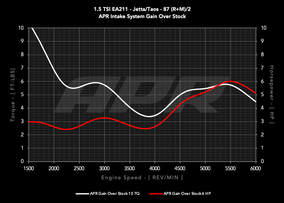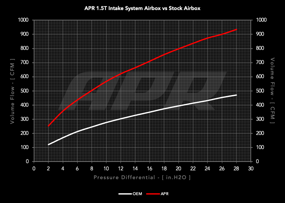 APR PEX Otevřené sportovní sání pro 1,5 TSI dodá vašemu motoru vyšší výkon, lepší reakce a výraznější zvuk. Konstrukce sání odstraňuje restrikce v originálním sacím traktu a výrazně vylepšuje efektivitu díky velkému 7" filtru a kvalitnímu odstínění. Sání bylo vyvinuto speciálně pro uvedené modely a pasuje bez dalších zásahů kus za kus. Zlepšením průtoku vzduchu z 509 CFM na 730 CFM během testování prokázalo nárůst výkonu až o 8 koní a 15 Nm.