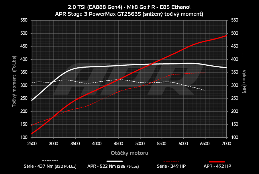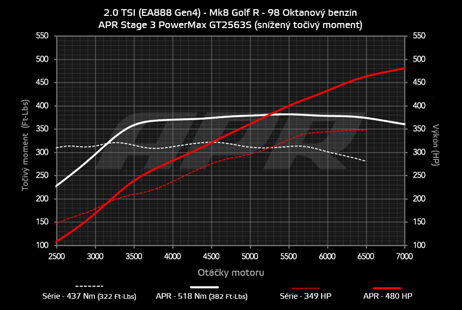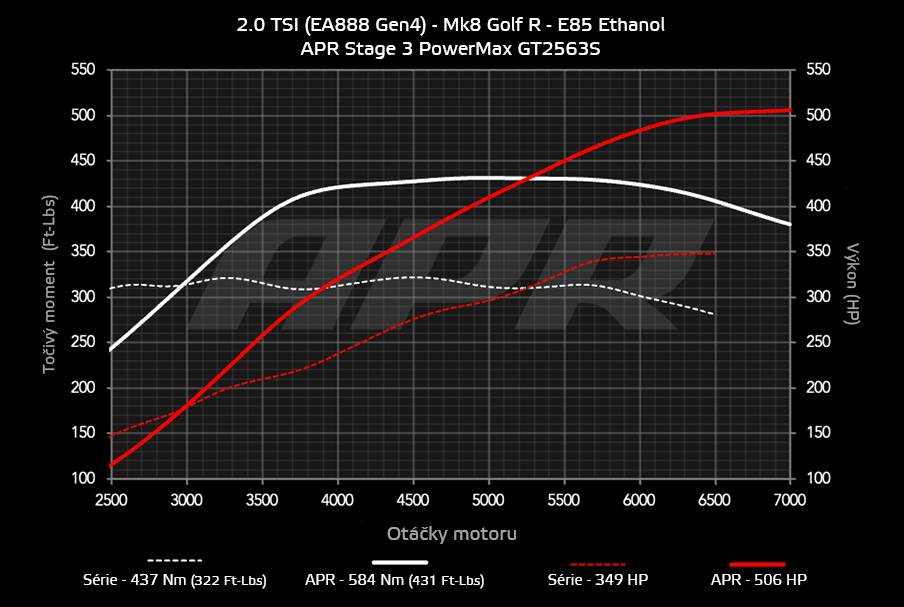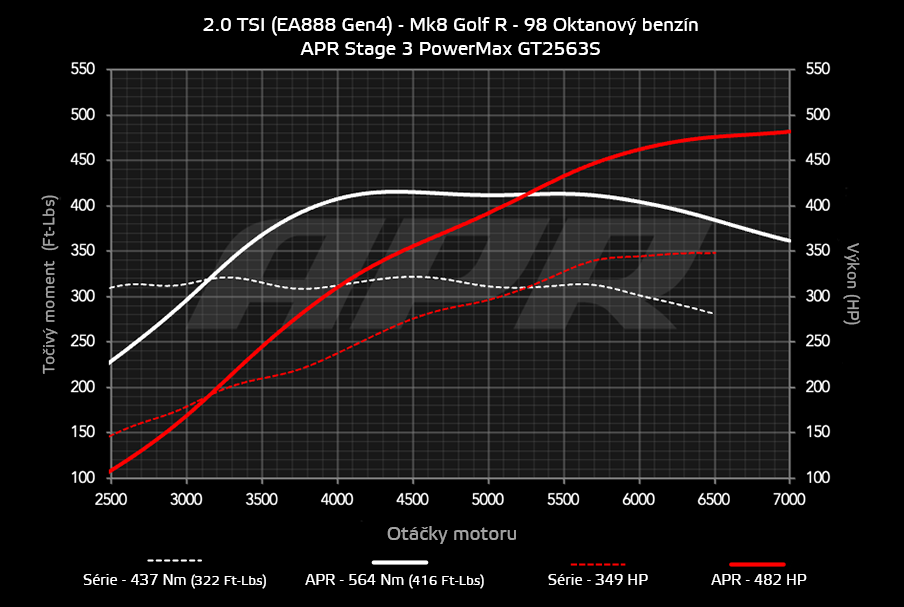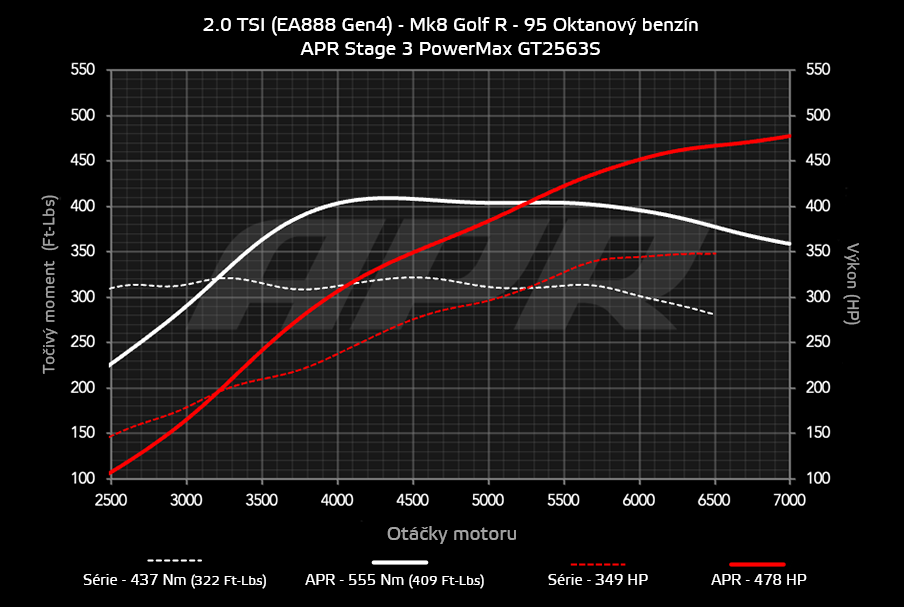 APR Stage 3 pokročilá úprava řídící jednotky přináší nejvyšší zvýšení výkonu vozu, které stále zachovává vysokou spolehlivost a originální emise vozu. S možností homologace se jedná o nejvyšší možnou legální úpravu v České republice pro motor 2,0 TSI Gen4. Tato úprava plně využije výkonový potenciál přidaných dílů a posune zrychlení a jízdní vlastnosti na úplně novou úroveň. Úprava řídící jednotky motoru se nahrává do sériové řídící jednotky. Vyžadované mechanické díly nejsou součástí této úpravy a je potřeba je objednat zvlášť.