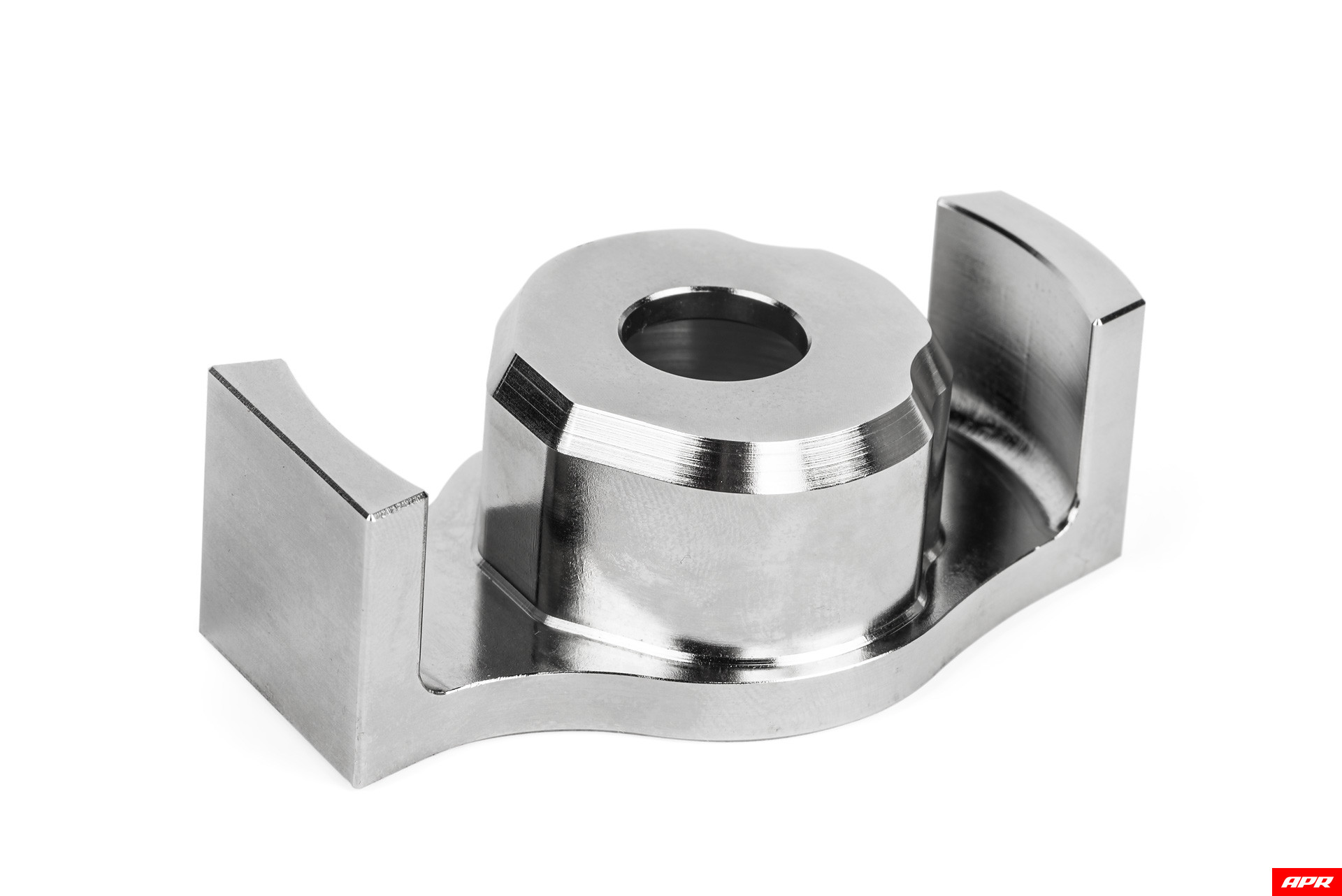 APR výplň spodního silentbloku motoru je vyrobena obrobením masivního kusu nerezové oceli. Díky zvolenému materiálu se výplň nebude při působení sil z motoru nějak výrazně deformovat tak, jako tomu je u altrnativních výplní z gumy, polyurethanu nebo hliníku. APR výplň si tak dokáže uchovat svůj tvar i pevnost, zatímco alternativní díly často selhají, vymačkají se, prasknou nebo se rozpadnou.