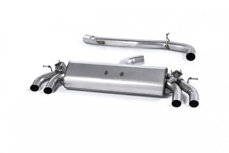 Vyroben z kvalitní nerezové oceli. Jedná se o výfukový systém od OPF / GPF filtru dozadu (filtr pevných částic) a obsahuje díl bez rezonátoru (nejhlasitější verze), nebo variantu s rezonátorem (tichá varianta), vedení kolem zadní nápravy s rozdvojením a tlumiči výfuku za zadní nápravou s ventily pro ovládání hlasitosti výfuku. Zakončuje ho několik variant koncovek výfuku. Díky zvětšenému průměru vedení přispívá k lepšímu proudění výfukových plynů, což má pozitivní vliv na výkon hlavně u upravených aut. Výfuk je až o 35% lehčí než originální, vyrobený z těžké oceli. Zlepšuje a zvýrazňuje zvuk motoru, ovšem bez nežádoucího dunění. Největší nárust výkonu a úbytek hmotnosti lze čekat ve spojení s prvním dílem výfuku Milltek Sport a úpravou řídící jednotky od APR.