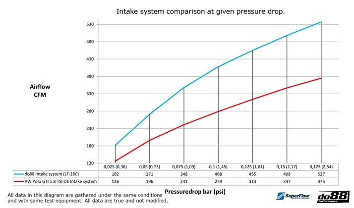 Do88 kit sání je navržen tak, aby zlepšil průtok vzduchu, snížil tlakové ztráty a zároveň nasával pouze studený vzduch. Mnoho aftermarketových sacích systémů nasává horký vzduch z motorového prostoru, což vede k vyšší teplotě nasávaného vzduchu (IAT) a tím pádem ke ztrátě výkonu a efektivity. Jedná se tak o uzavřené chladné sání.