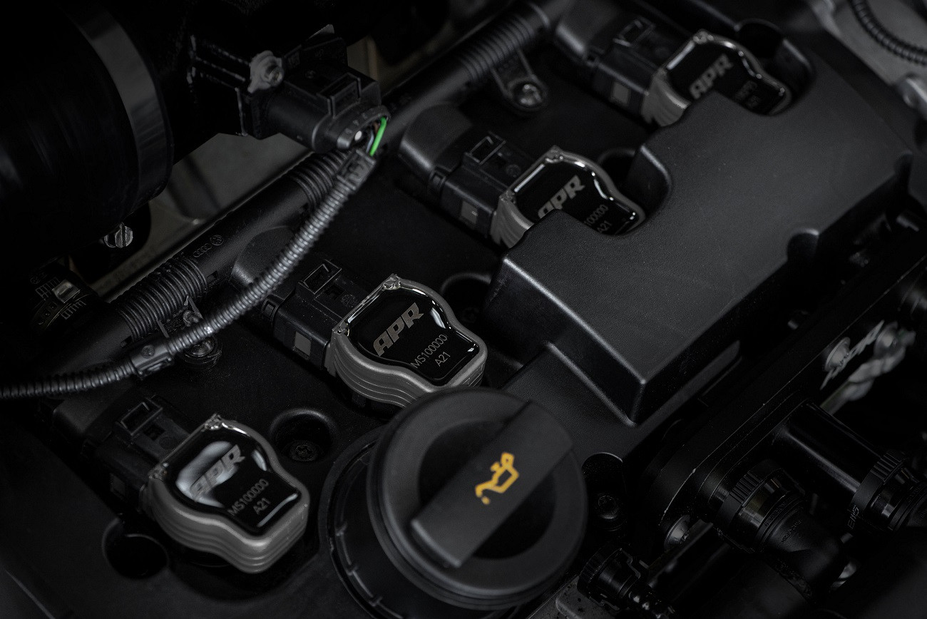 APR zapalovací moduly jsou navrhnuty tak, aby dodaly zapalovacím svíčkám o 10% vyšší napětí a s lepší přesností. Díky většímu napětí budou produkovat svíčky větší jiskru, čímž se zlepší zapalování směsi a omezí se nežádoucí detonační zapalování. Po vzoru oblíbených zapalovacích cívek z AUDI R8, i tyto jsou provedeny v šedé barvě.