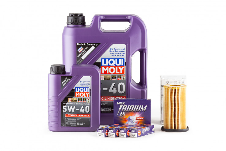 Zakladní olejový servis pro motory 2,0 TFSI EA113. Tento set obsahuje originální olejový filtr, zapalovací svíčky pro motory se zvýšeným výkonem 240-380hp a kvalitní motorový olej LIQUI MOLY Synthoil High Tech 5w40, který splňuje koncernovou normu VW 502 00, která je předepsaná pro tyto motory. Vždy se v servisní knize ujistěte, že tato norma je vhodná pro Váš motor. Tato viskozita je vhodnější pro vysoce výkonné a zatěžované motory a pro motory, které mají lehce vyšší spotřebu oleje.