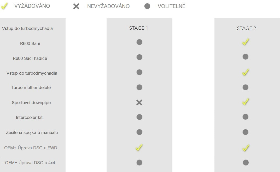 Jakmile se jednou rozhodnete pro OEM+ úpravu řídící jednotky, tak další postup na Stage 2 a Stage 3 máte, v případě zakoupení dílů od nás, již zdarma. Veškeré díly Vám jsme schopni u nás namontovat.