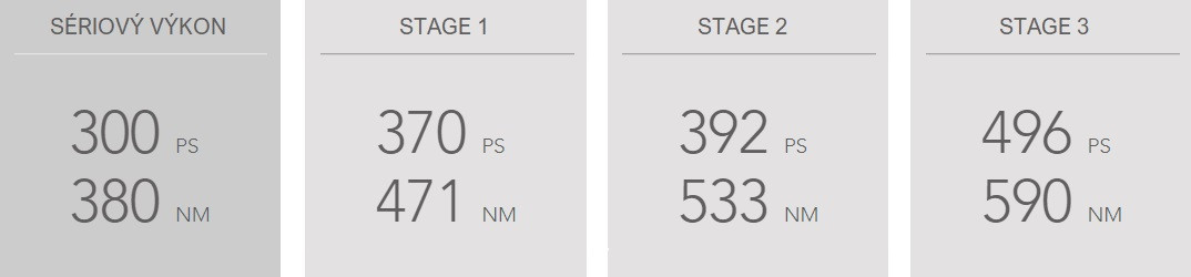 Pro dosažení výkonu Stage 2 úpravy je potřeba dalších podpůrných dílů v podobě dosazení sportovního sání a sporovního prvního dílu výfuku. I k této úpravě můžete přidat další díly, které dále podpoří výkon. Velmi výrazné je v této fázi úpravy dosazení Intercooler kitu.