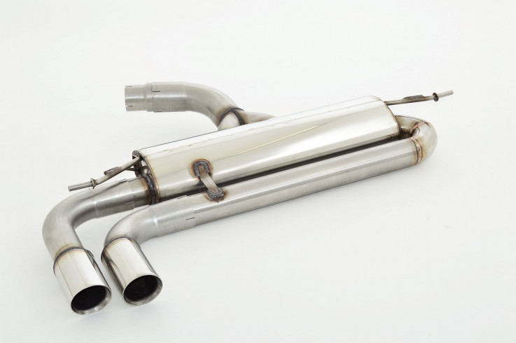 Koncové tlumiče výfuku se starají o mírné vylepšení zvukového projevu. Obsahuje tlumiče, koncovky výfuku a vedení výfuku pro napojení na originální středový díl. Vzhledem k tomu, že originální výfuk je od katalyzátoru v jednom kuse, bude potřeba ho v místě napojení rozříznout, aby se mohl nový výfuk napojit.