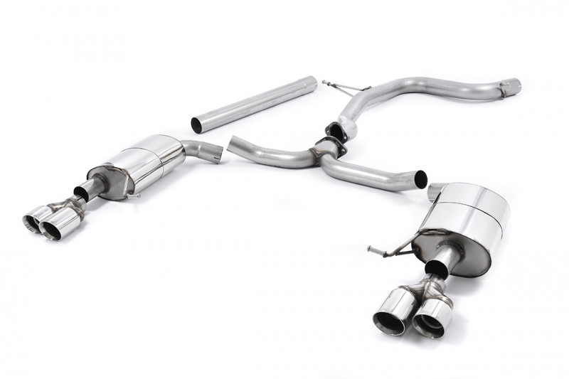 Vyroben z kvalitní nerezové oceli. Obsahuje díl bez rezonátoru (nejhlasitější verze), nebo variantu s rezonátorem (tišší varianta), vedení kolem zadní nápravy s tlumiči výfuku za zadní nápravou a zakončuje ho několik variant koncovek výfuku. Díky zvětšenému průměru vedení přispívá k lepšímu proudění výfukových plynů, což má pozitivní vliv na výkon hlavně u upravených aut. Výfuk je až o 35% lehčí než originální, vyrobený z těžké oceli. Zlepšuje a zvýrazňuje zvuk motoru, ovšem bez nežádoucího dunění. Největší nárust výkonu a úbytek hmotnosti lze čekat ve spojení s prvním dílem výfuku Milltek Sport a úpravou řídící jednotky od APR.