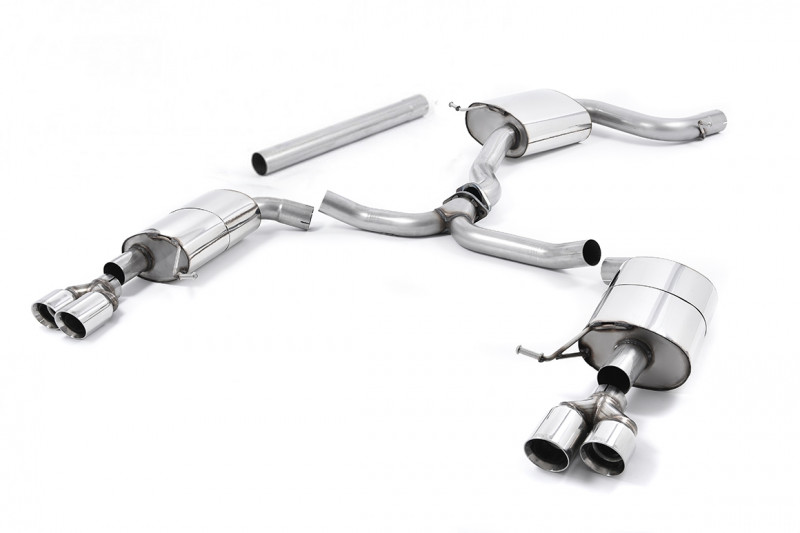Vyroben z kvalitní nerezové oceli. Jedná se o výfukový systém od OPF / GPF filtru dozadu (filtr pevných částic) a obsahuje středový díl s rezonátorem nebo bez rezonátoru (dle verze), vedení kolem zadní nápravy s tlumiči výfuku za zadní nápravou. Zakončen je koncovkami v několika provedeních. Díky zvětšenému průměru vedení a zlepšení průtoku spalin skrz vedení, zlepšuje jak výkon, tak hlavně i zvukový projev. Výfuk je až o 35% lehčí než originální, vyrobený z těžké oceli s lepším rozložením hmotnosti. Největší nárust výkonu a úbytek hmotnosti lze čekat ve spojení s prvním dílem výfuku Milltek Sport a úpravou řídící jednotky od APR.