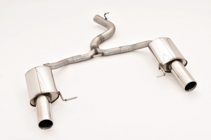 Koncové tlumiče výfuku se starají o mírné vylepšení zvukového projevu. Obsahuje tlumiče, koncovky výfuku a vedení výfuku pro napojení na originální středový díl. Vzhledem k tomu, že originální výfuk je od katalyzátoru v jednom kuse, bude potřeba ho v místě napojení rozříznout, aby se mohl nový výfuk napojit.
