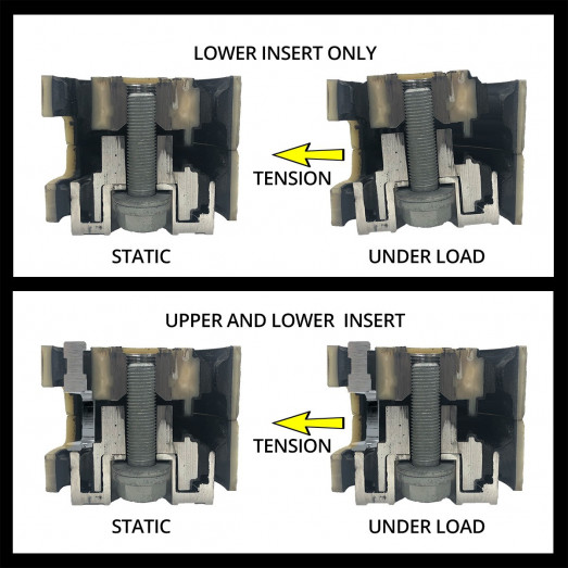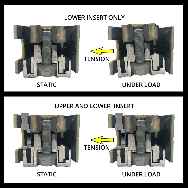 Horní vložka spodního silentbloku motoru od 034Motorsport eliminuje tyto ohybové síly, což umožňuje, aby držák dogbone fungoval správně i za těchto mimořádných událostí.