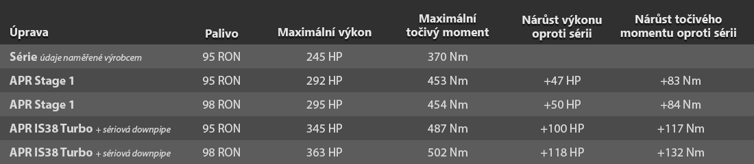 - APR Stage 1 chiptuning Škoda Octavia 3 RS RS245 VW Golf 7 GTI Performance 2,0 TSI 180kW