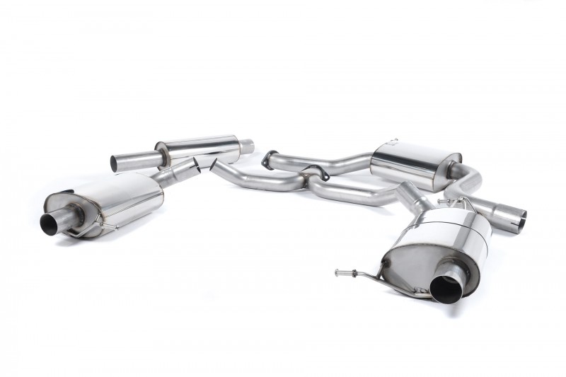 Vyroben z kvalitní nerezové oceli. Obsahuje středový díl bez rezonátoru (hlasitější verze), nebo variantu s rezonátory. Pokračuje vedením kolem zadní nápravy s tlumiči výfuku za zadní nápravou a zakončuje ho vedení ústící do originálních koncovek. Díky zvětšenému průměru vedení přispívá k lepšímu proudění výfukových plynů, což má pozitivní vliv na výkon hlavně u upravených aut. Výfuk je až o 35% lehčí než originální, vyrobený z těžké oceli. Zlepšuje a zvýrazňuje zvuk motoru, ovšem bez nežádoucího dunění. Největší nárust výkonu a úbytek hmotnosti lze čekat ve spojení s prvním dílem výfuku Milltek Sport a úpravou řídící jednotky od APR.