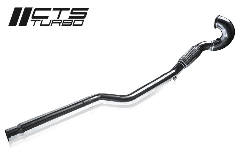 CTS Turbo první díl výfuku pro vozy s pohonem 4x4 a motory 1,8 & 2,0 TSI. Seriový první díl výfuku je díky restriktivnímu katalyzátoru a několika zůžením překážkou v dosažení vyšších výkonů. Zvláště pak u chipnutých aut ubírá tento díl značný výkon, který by mohl posunout auto zase o kus dále. 1. díl výfuku od CTS turbo dovolí výfukovým plynům hladké proudění pryč z motoru, zvýší výkon a lehce podpoří i zvuk motoru. Hlavní přednosti tohoto dílu spočívají v CNC opracovaném vstupu, který zajistí hladký přechod mezi turbodmychadlem a výfukem, ihned za turbodmychadlem zvětšené vedení na 87,5mm (3,5"), které ústí do strojově ohýbaného 76mm (3") vedení. Je možno vybrat mezi verzí se sportovním Magnaflow katalyzátorem nebo verzi bez katalyzátoru (decat).
