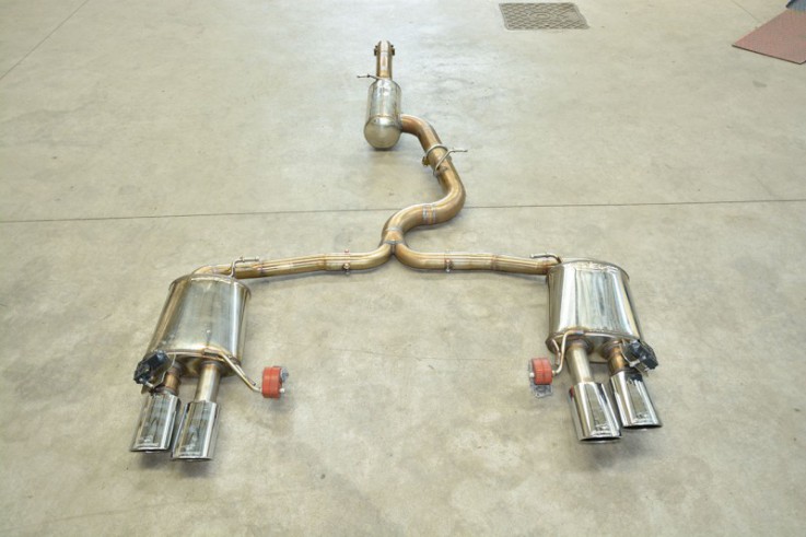 Vyroben z kvalitní nerezové oceli, obsahuje středový díl, podle verze s rezonátorem nebo bez, rozdvojení u zadní nápravy a zadní tlumiče s klapkami pro ovládání hlasitostí a zpětných tlaků, které zakončují dvojité kulaté koncovky. Díky zvětšenému průměru vedení přispívá k lepšímu proudění výfukových plynů, což má pozitivní vliv na výkon hlavně u upravených aut. Výfuk je až o 35% lehčí než originální, vyrobený z těžké oceli. Zlepšuje a zvýrazňuje zvuk motoru bez nežádoucího dunění. Největší nárust výkonu a úbytek hmotnosti lze čekat ve spojení s prvním dílem výfuku Supersprint a úpravou řídící jednotky od APR