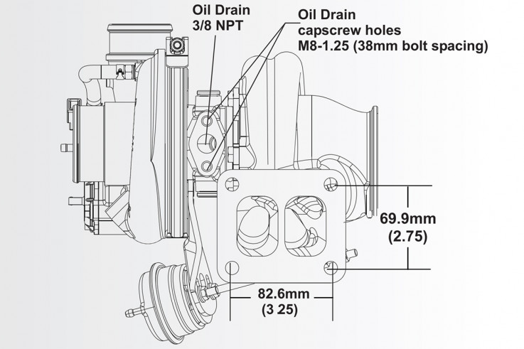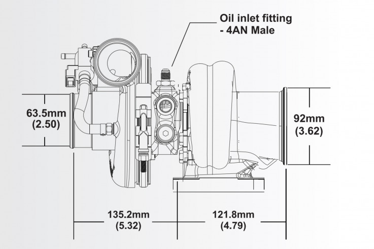 Vstup do kompresorové skříně: 2,5" (63,5mm)