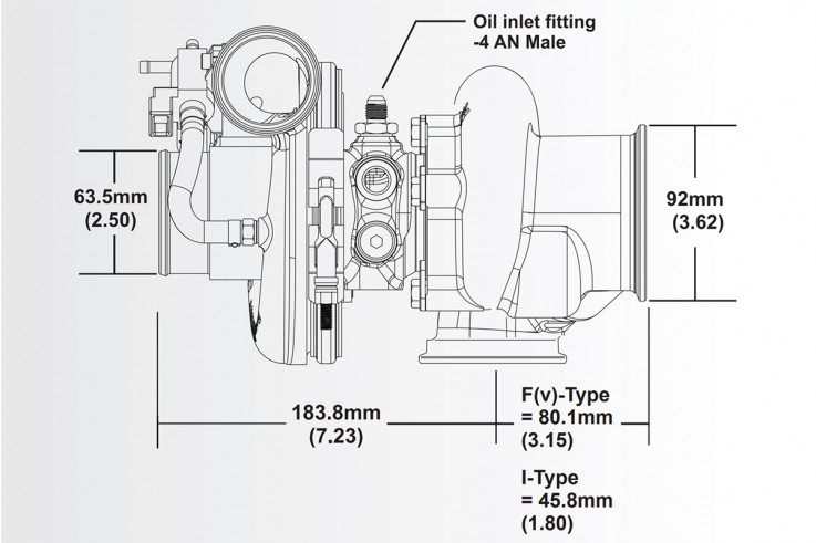 Vstup do kompresorové skříně: 2,5" (63,5mm)