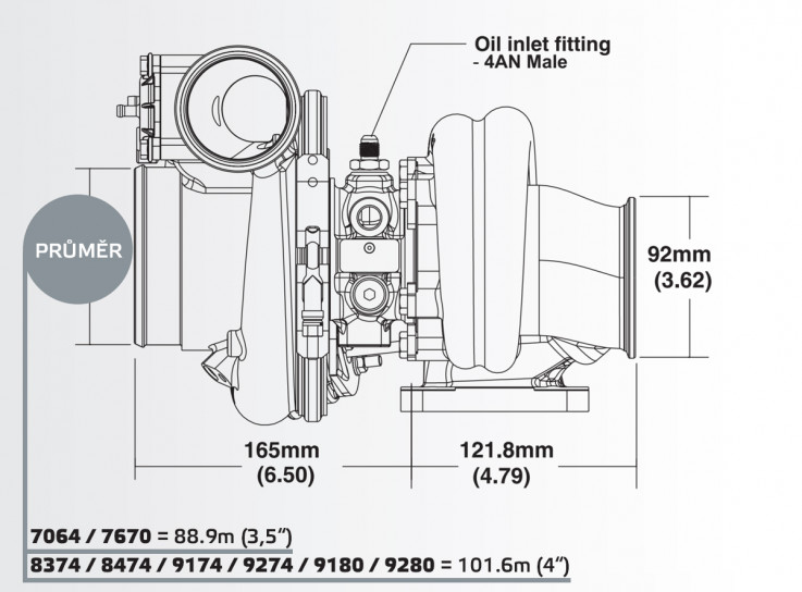 Vstup do kompresorové skříně: 3,5" (88,9mm)