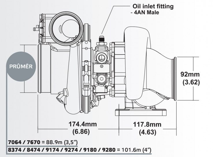 Vstup do kompresorové skříně: 3,5" (88,9mm)