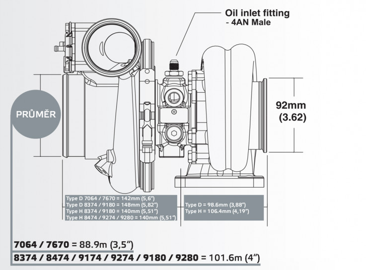 Vstup do kompresorové skříně: 3,5" (88,9mm)