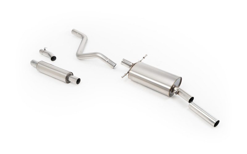 Downpipe-Back výfukový systém Milltek Sport pro klasický Volkswagen Golf GTI Mk1 Cabriolet nabízí ideální kombinaci sportovního zvuku a komfortu. Tato varianta je vybavena rezonátorem, díky čemuž poskytuje kultivovanější, tišší a příjemnější zvukový projev vhodný pro každodenní ježdění nebo delší cestování.