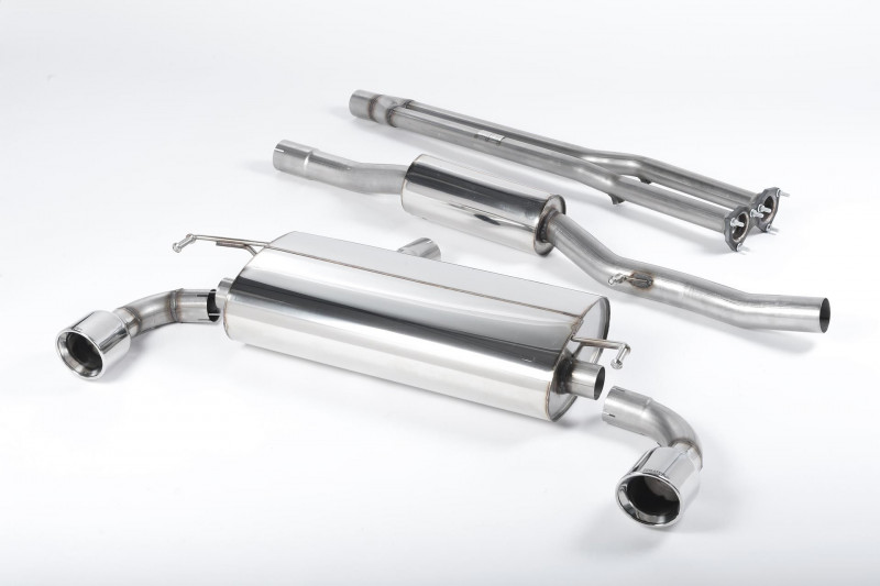 Vyroben z kvalitní nerezové oceli, obsahuje díl bez rezonátoru (hlasitější verze), vedení kolem zadní nápravy s tlumičem výfuku za zadní nápravou a zakončuje ho dvojitá kulatá koncovka. Díky zvětšenému průměru vedení přispívá k lepšímu proudění výfukových plynů, což má pozitivní vliv na výkon hlavně u upravených aut. Výfuk je až o 35% lehčí než originální, vyrobený z těžké oceli. Zlepšuje a zvýrazňuje zvuk motoru, ovšem bez nežádoucího dunění. Největší nárust výkonu a úbytek hmotnosti lze čekat ve spojení s prvním dílem výfuku Milltek Sport a úpravou řídící jednotky od APR.