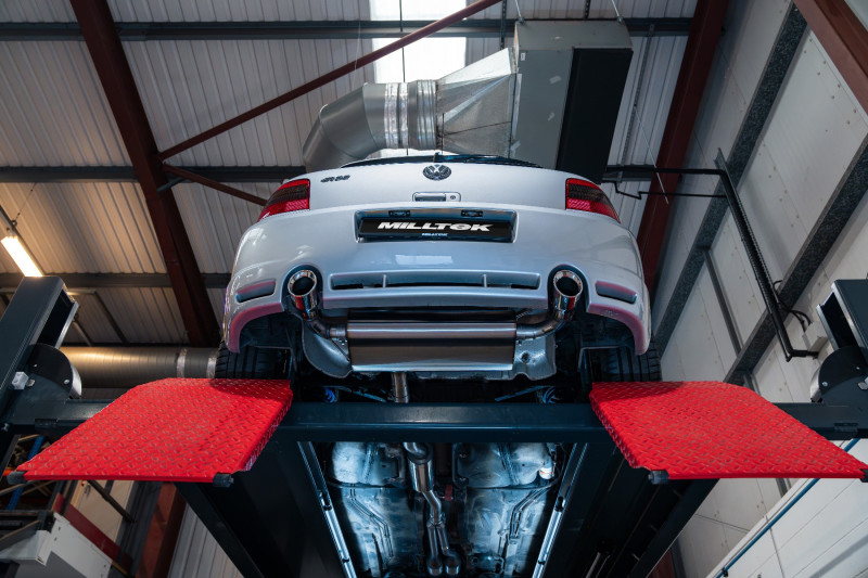 Vyroben z kvalitní nerezové oceli, obsahuje díl bez rezonátoru (hlasitější verze), vedení kolem zadní nápravy s tlumičem výfuku za zadní nápravou a zakončuje ho dvojitá kulatá koncovka. Díky zvětšenému průměru vedení přispívá k lepšímu proudění výfukových plynů, což má pozitivní vliv na výkon hlavně u upravených aut. Výfuk je až o 35% lehčí než originální, vyrobený z těžké oceli. Zlepšuje a zvýrazňuje zvuk motoru, ovšem bez nežádoucího dunění. Největší nárust výkonu a úbytek hmotnosti lze čekat ve spojení s prvním dílem výfuku Milltek Sport a úpravou řídící jednotky od APR.