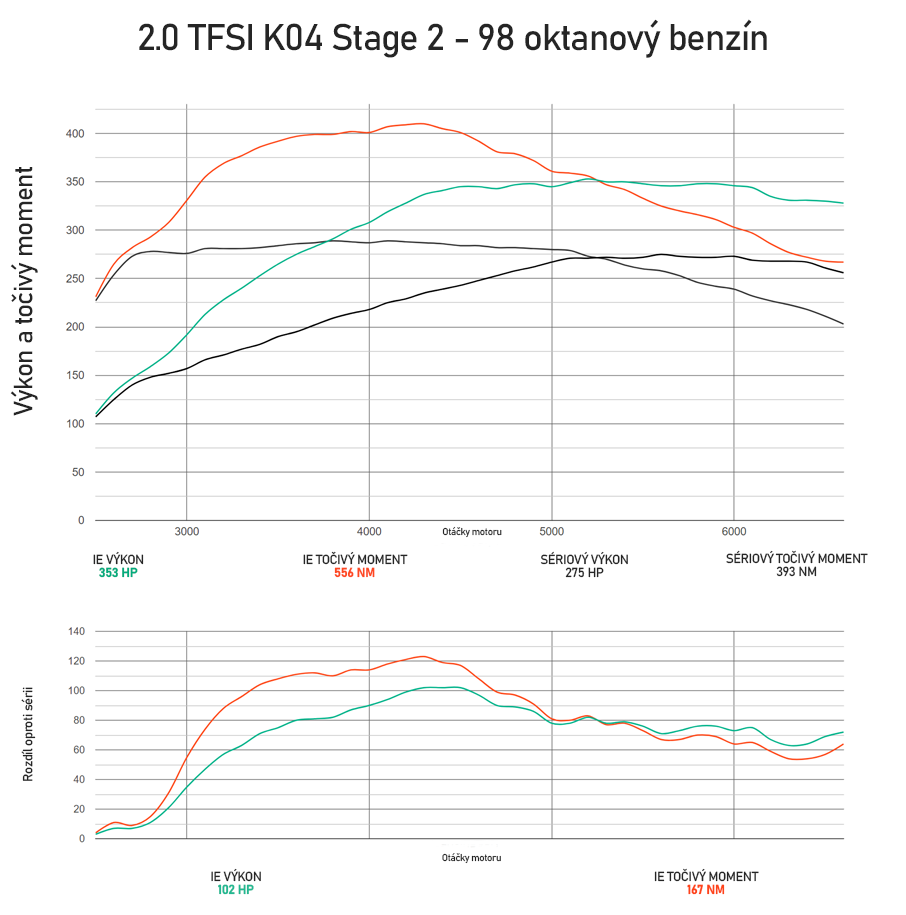 Toto naladění je určené pro motory 2,0 TSI EA113 162-206kW, které byly již z výroby osazeny turbodmychadlem K04 a s rokem výroby od 2006+ až po cca 2013.