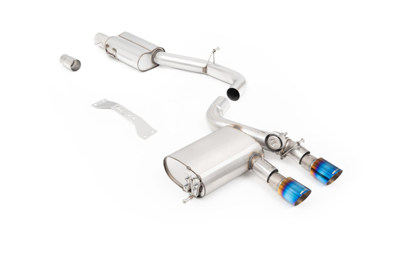 - Cat-back výfuk s klapkou VW Golf 5 R32 3.2 VR6 – Milltek Sport – S rezonátorem / pálené/modré titanové koncovky