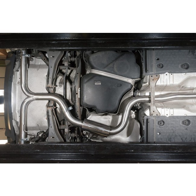 Catback výfuk Cobra Sport vyrobený z nerezové oceli T304. Celý výfuk je tvořen ohýbaným vedením o průměru 76,2 mm s průchozím absorpčním tlumičem. Díky zlepšení proudění spalin a eliminaci zpětných tlaků dokáží výfuky Cobra Sport zprostředkovat jak maximální výkon, tak hlavně i pěkný jadrný zvuk.